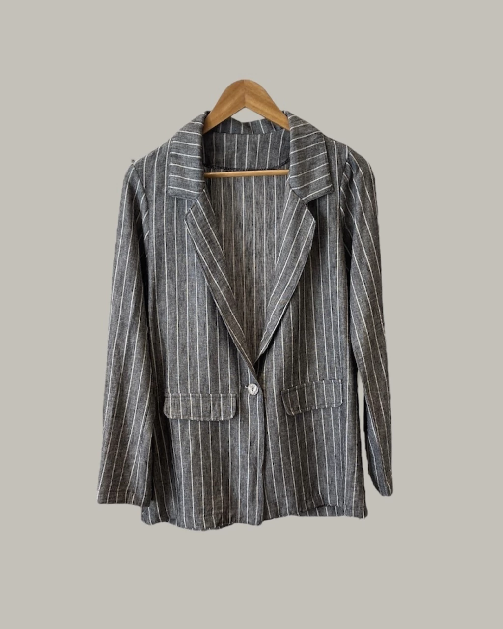 Blazer super fino confeccionado en lino rayado, tela importada, por lo cual, ingresa lote y si se agota no hay reposicion.